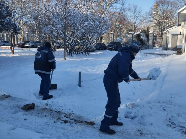 Работники Службы спасения приняли участие в расчистке от снега территории города Краснодара.