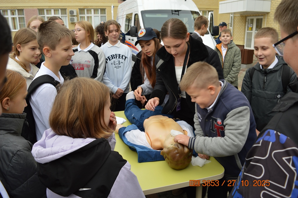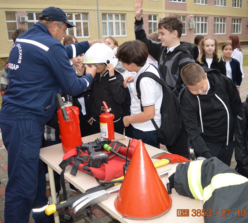 В проведении урока приняли участие ребята из команды № 10 проекта «Школа с Мэром», специалисты Курсов гражданской обороны и Службы спасения города Краснодара.