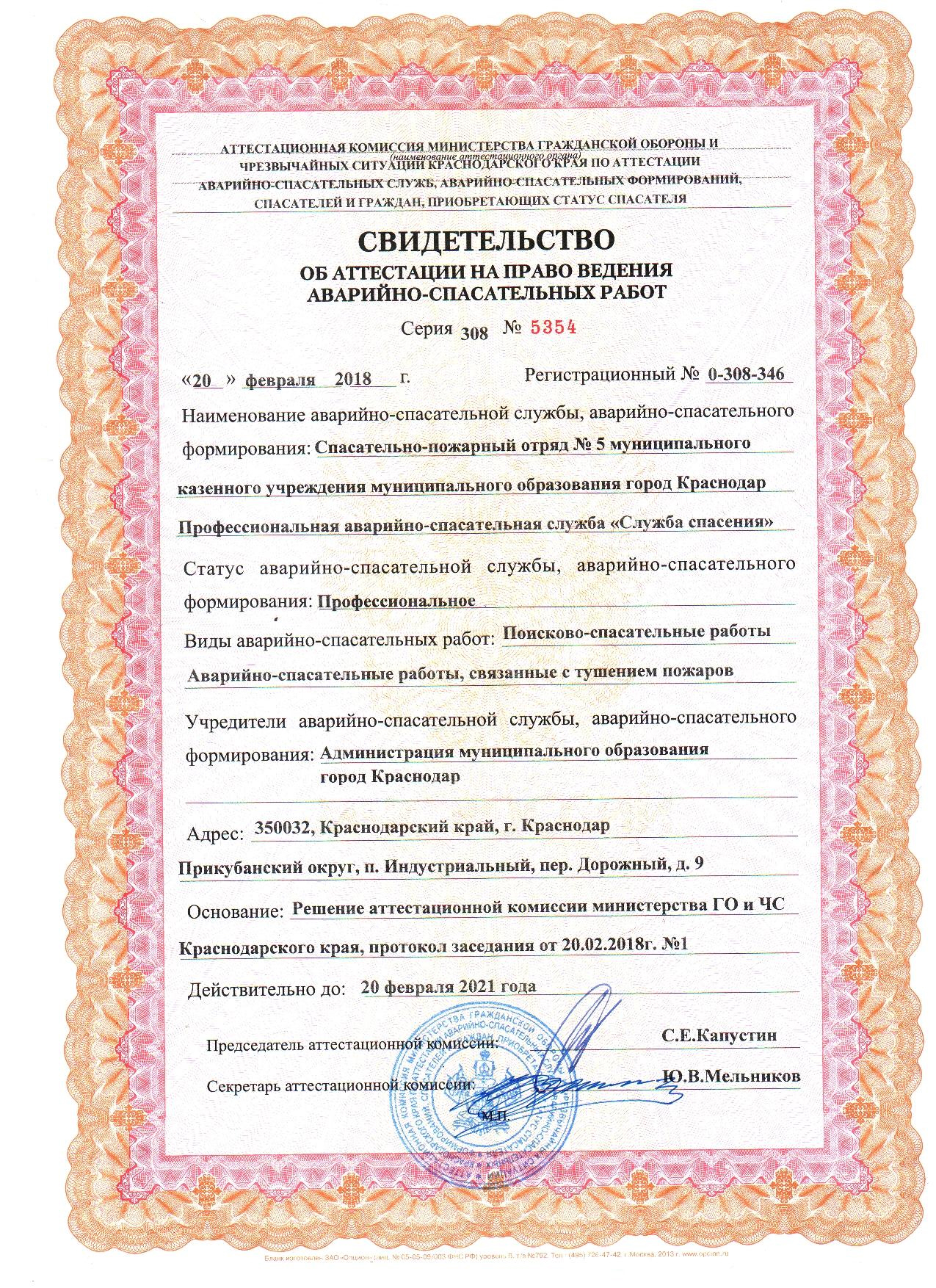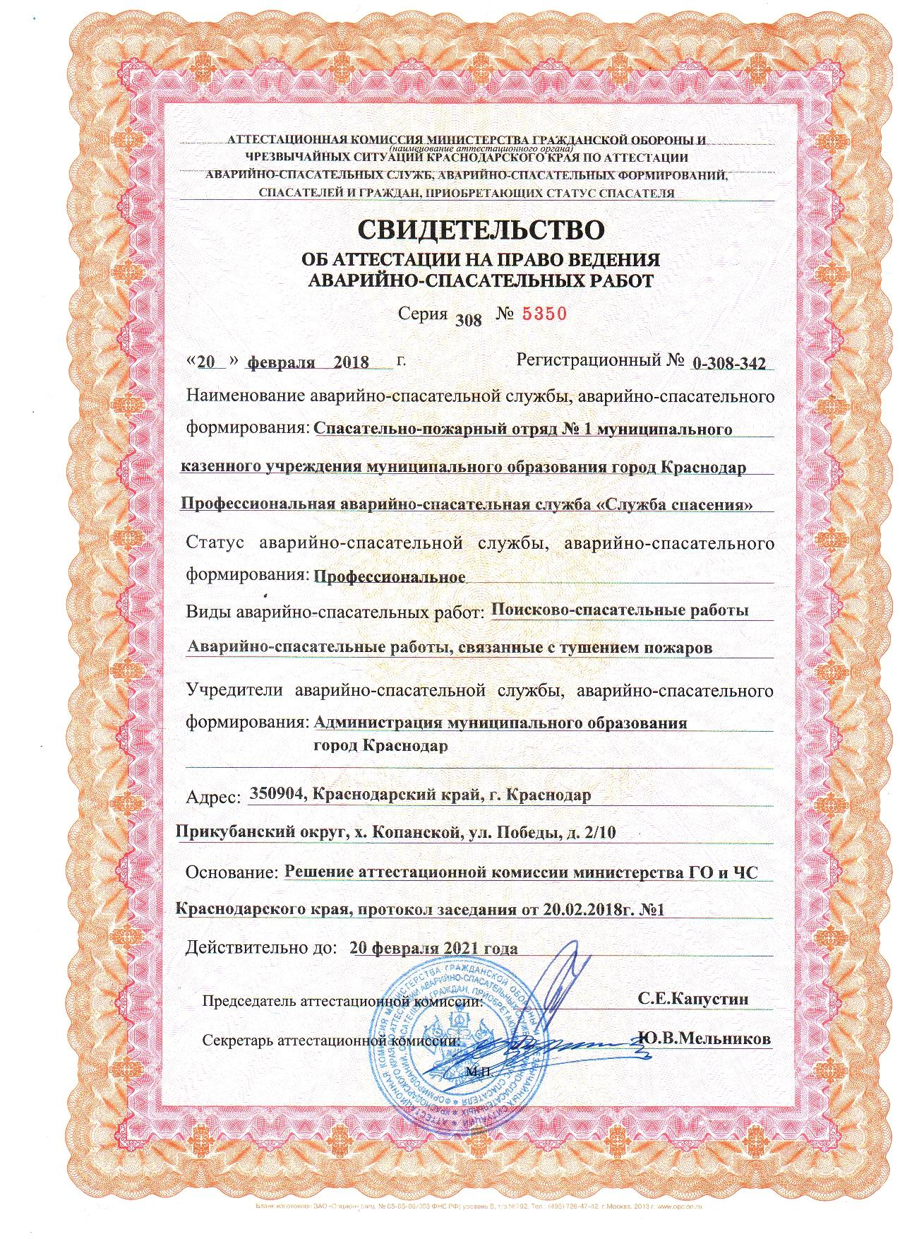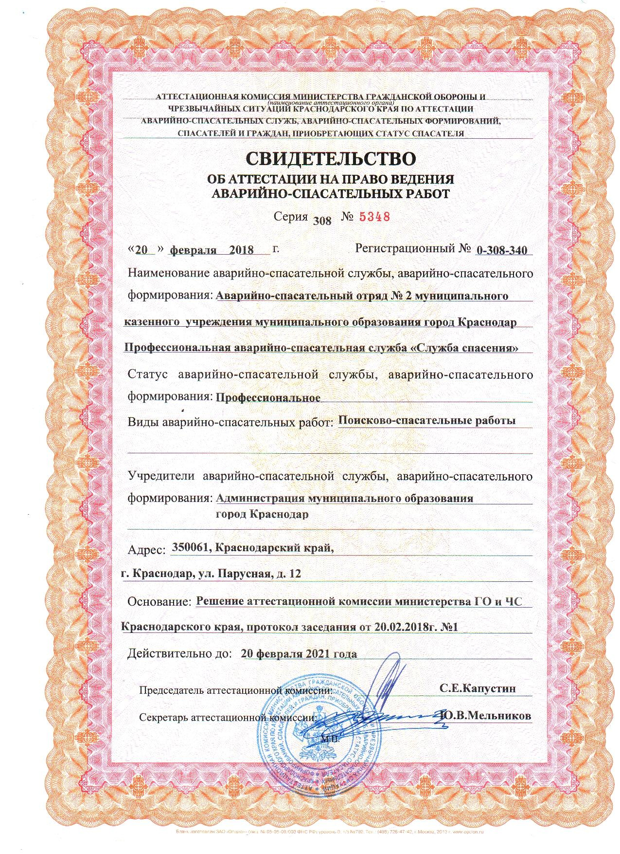 Полное наименование: Муниципальное казённое учреждение муниципального образования город Краснодар Профессиональная аварийно-спасательная служба «Служба спасения».
