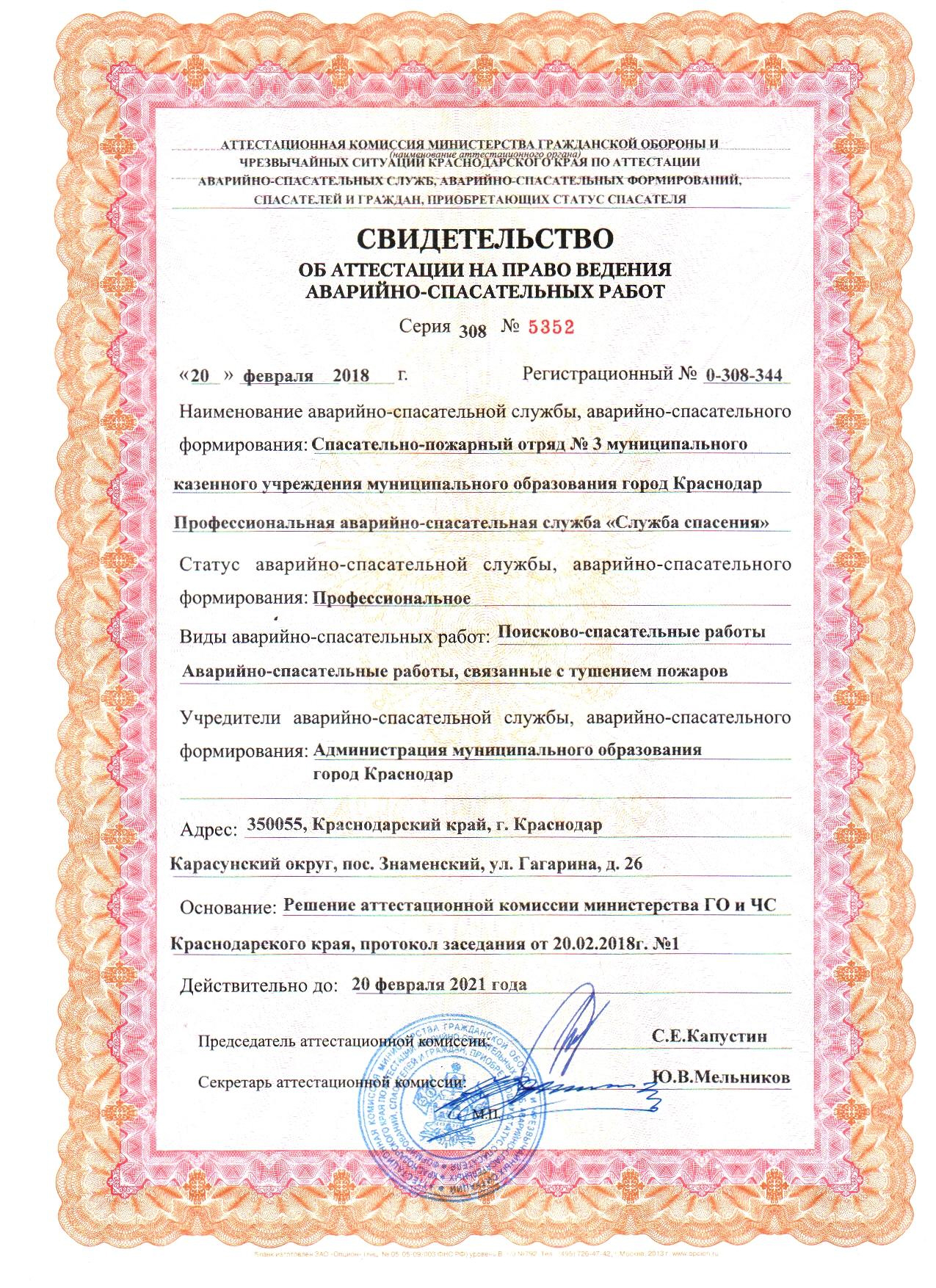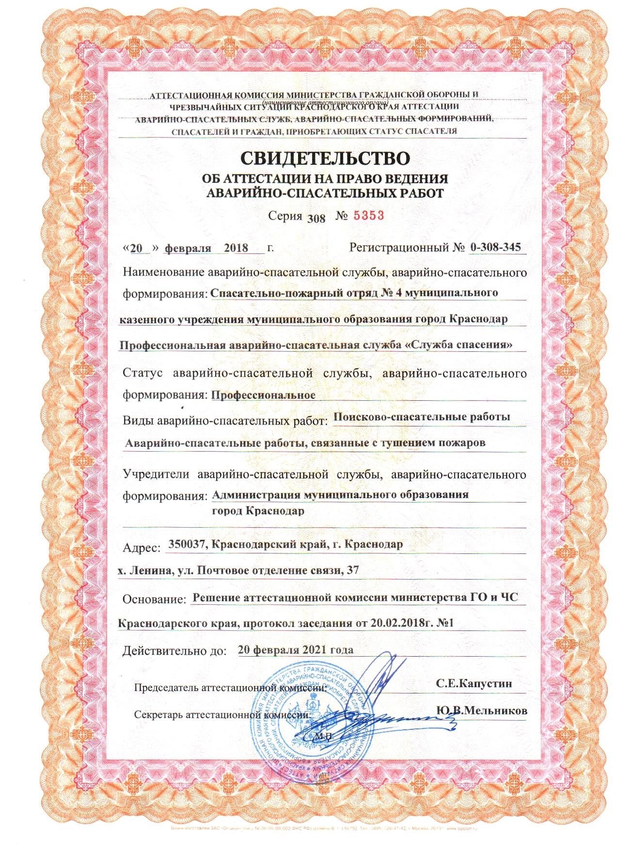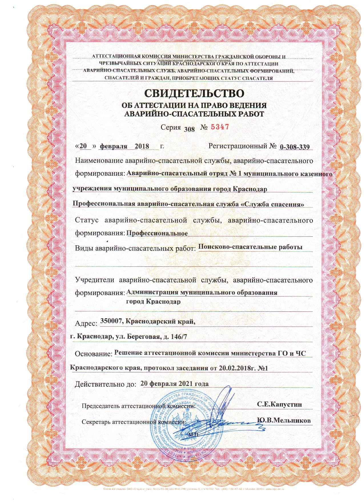 Полное наименование: Муниципальное казённое учреждение муниципального образования город Краснодар Профессиональная аварийно-спасательная служба «Служба спасения».