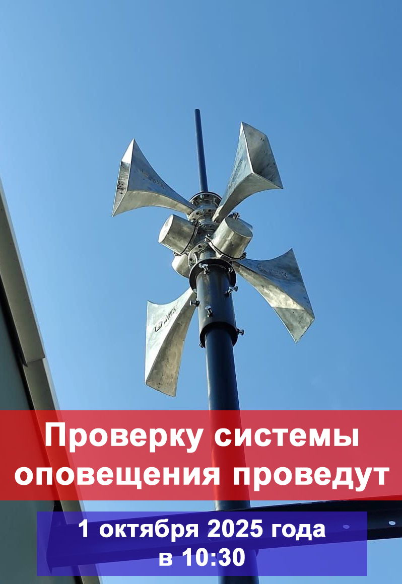 1 октября запланирована комплексная проверка готовности систем оповещения в рамках Всероссийских учений. Запуск сирен начнётся в 10:30 и 10:40, также прозвучат учебные сообщения по телевидению и радио.