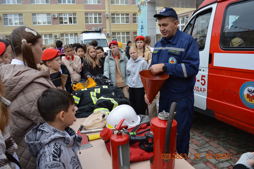 В проведении урока приняли участие ребята из команды № 10 проекта «Школа с Мэром», специалисты Курсов гражданской обороны и Службы спасения города Краснодара.