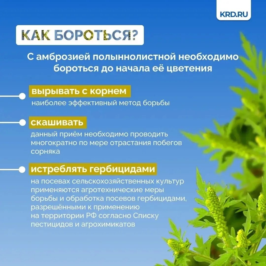 Установившаяся тёплая погода является благоприятными условиями для роста карантинной растительности. Как бороться с амброзией, куда сообщить о необходимости покоса и какая ответственность грозит за несоблюдение правил борьбы с сорняком – всё это рассказали в наших карточках.