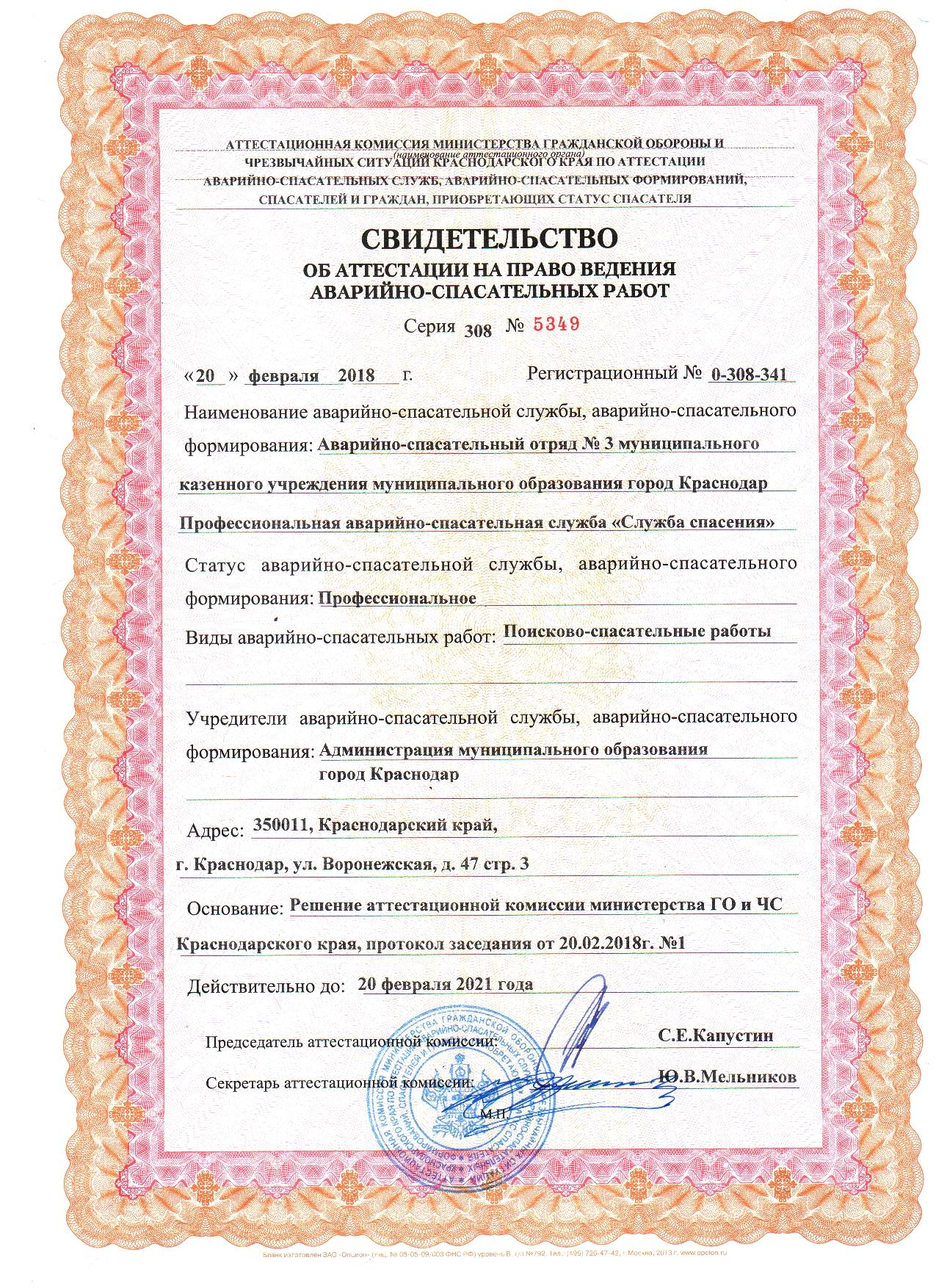 Полное наименование: Муниципальное казённое учреждение муниципального образования город Краснодар Профессиональная аварийно-спасательная служба «Служба спасения».